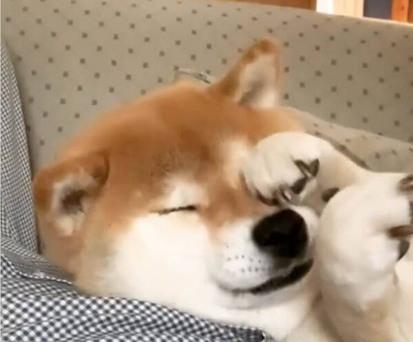 動画 就寝中の柴犬くん ほっぺに添えた両手が可愛いすぎるw Break Time